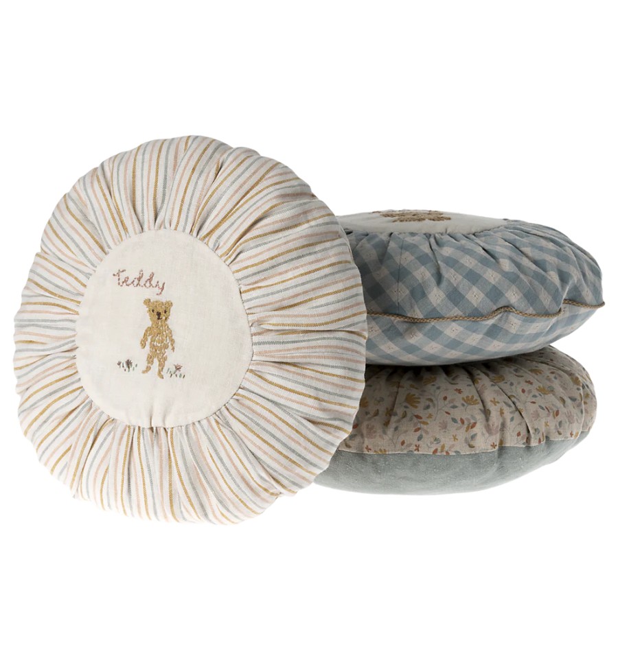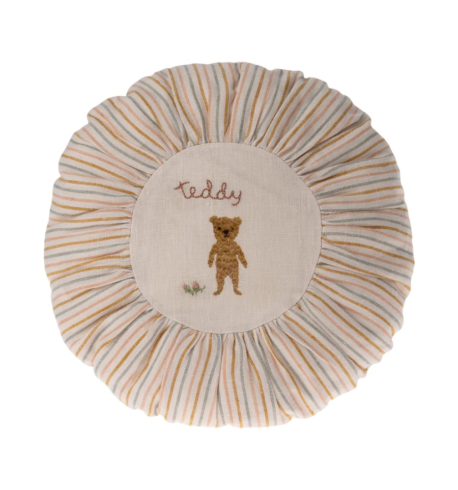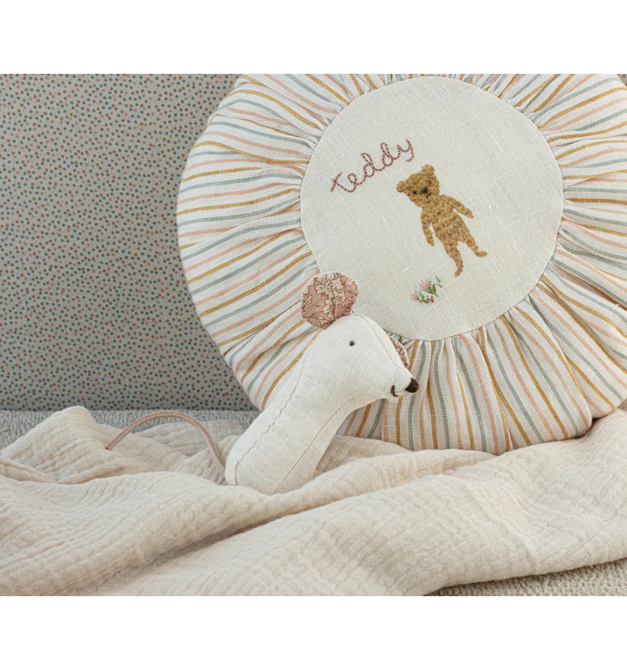 Cojín con funda confeccionada en lino natural y hermosos detalles bordados.