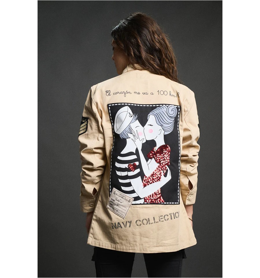 -Chaqueta de inspiración militar de corte recto, con efecto desgastado.