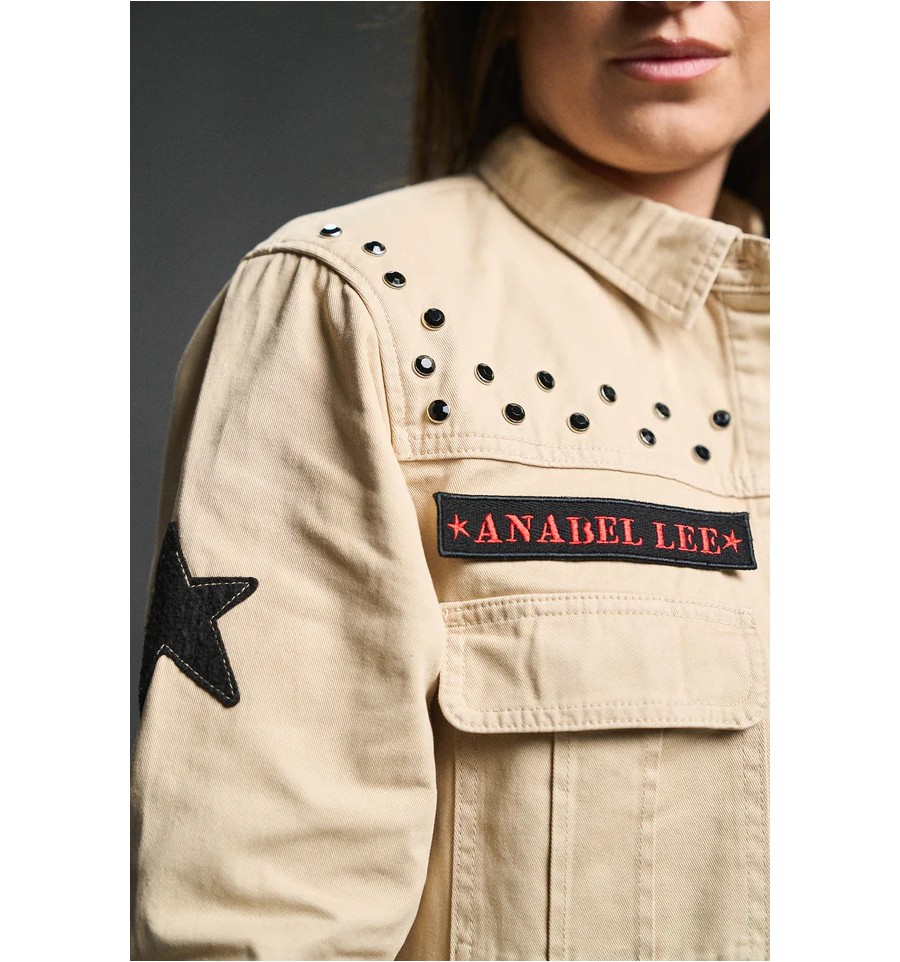 -Tachuelas de strass en la parte superior, parches con bordados y tiras de velcro.