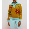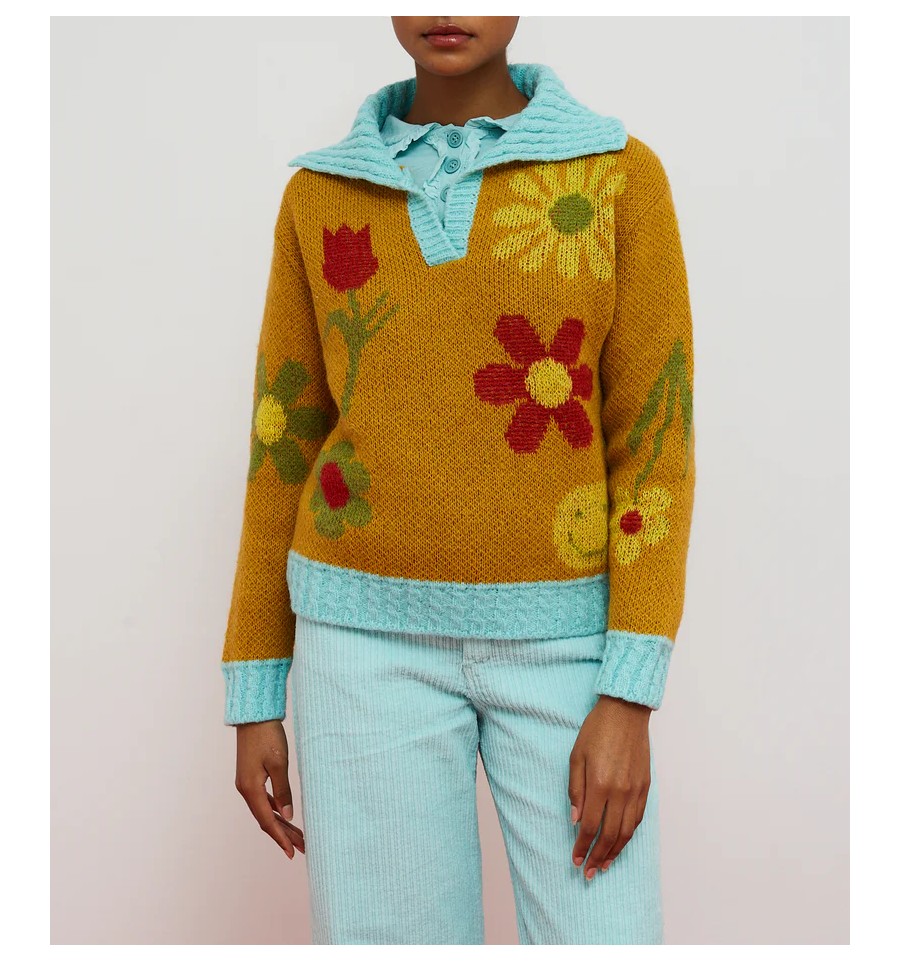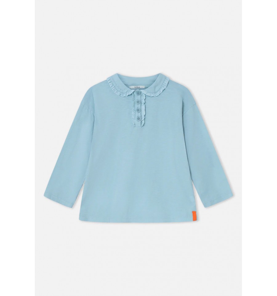 Camiseta de algodón, color agua. Corte recto y manga francesa. Cuello baby con volante mini rizado. Botonadura al tono en pecho con volante mini rizado. Etiqueta neón en bajo lateral. Tejido fino y agradable al tacto.