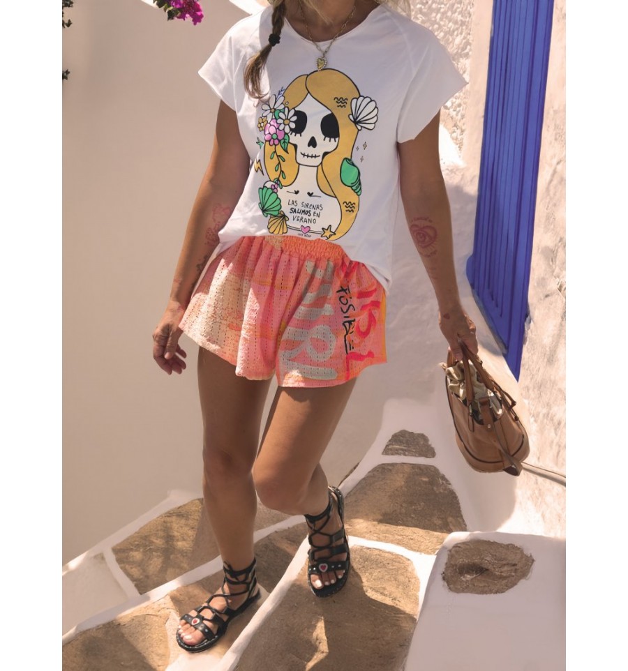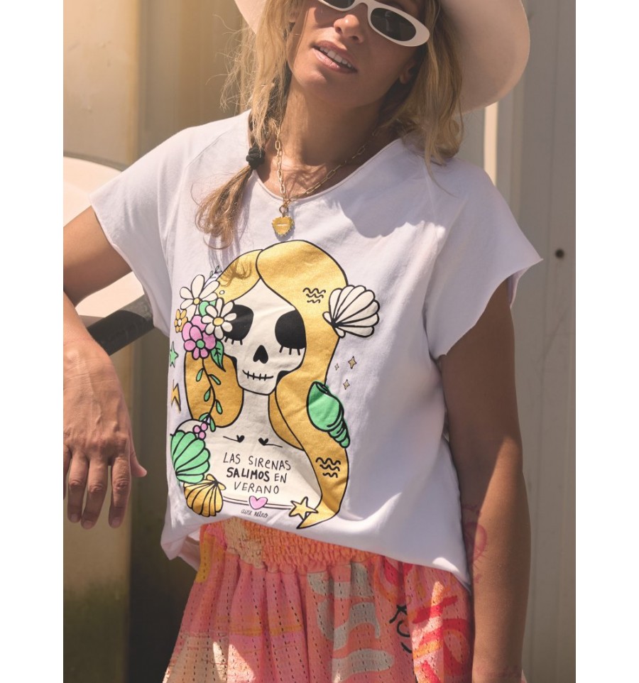 Camiseta oversize de algodón de primera calidad con ilustración Sirena en el frente, el dorado es glitter, porque el brilli brilli siempre es bien :)