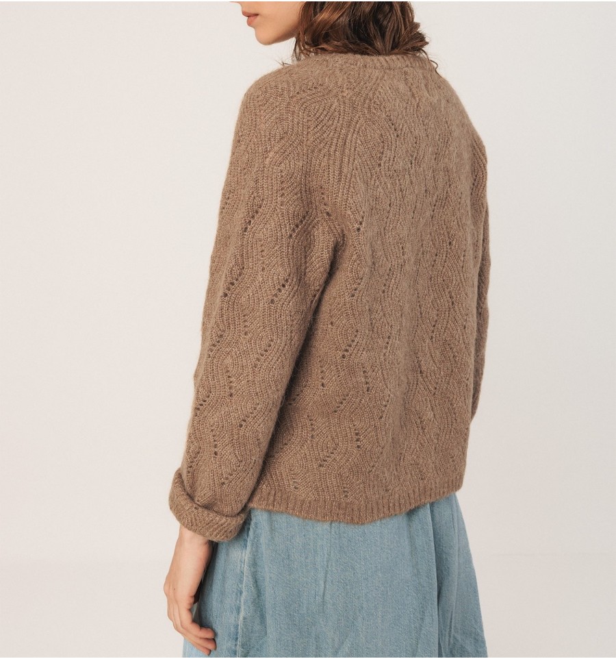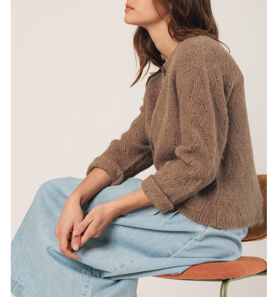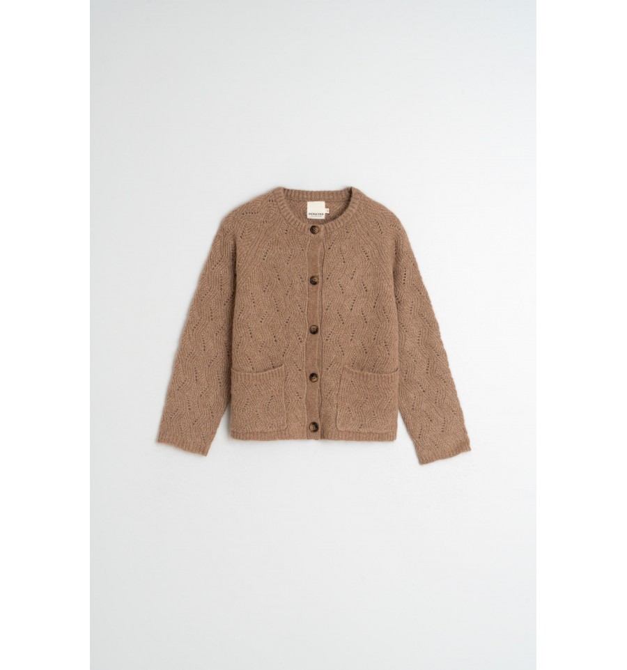 Nos encantan las chaquetas de punto fantasía y más si son de punto con alpaca. Es de esas prendas que no te puedes quitar en todo el invierno.