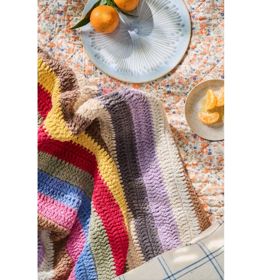 Manta tejida a crochet con rayas multicolor Expandir