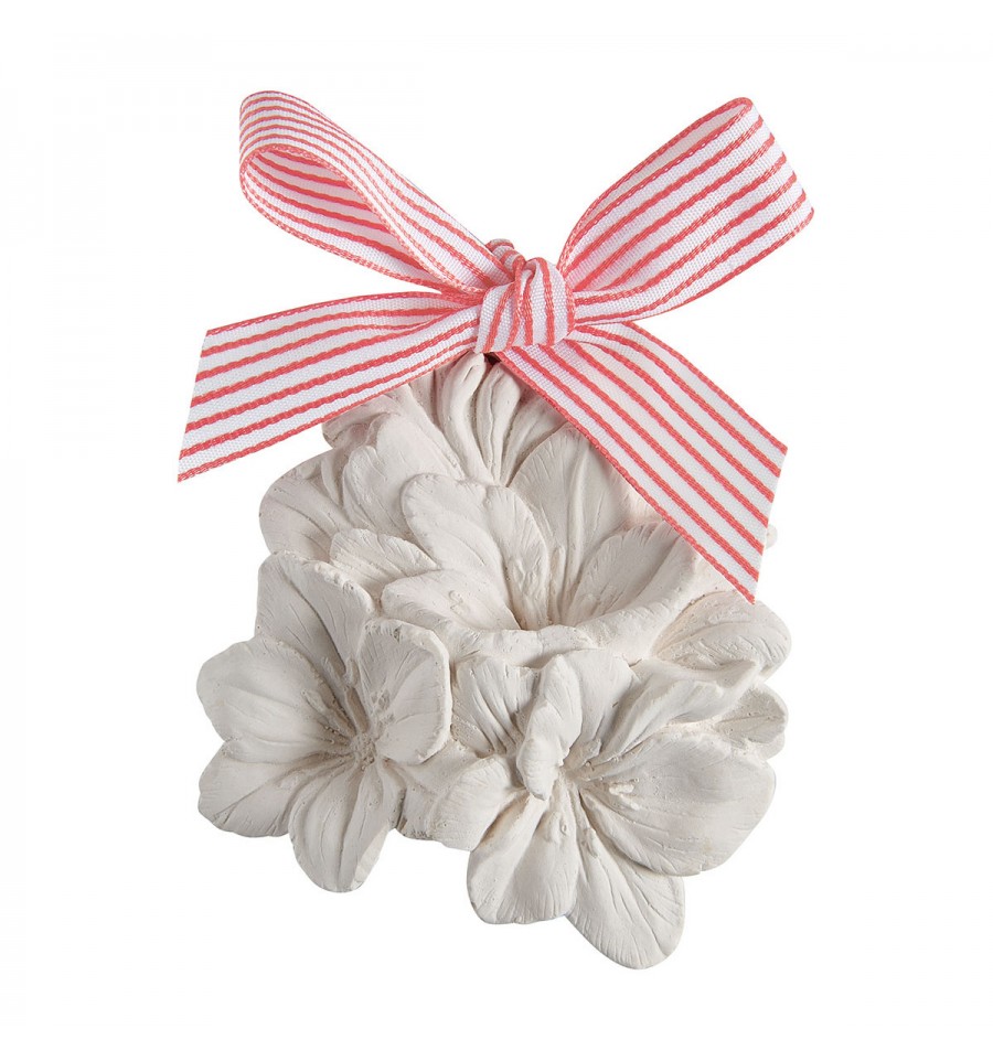 Emblemáticas de la marca, las decoraciones de yeso Mathilde M están delicadamente perfumadas y fabricadas a mano en nuestros talleres con métodos artesanales por nuestro escultor y ornamentalista.