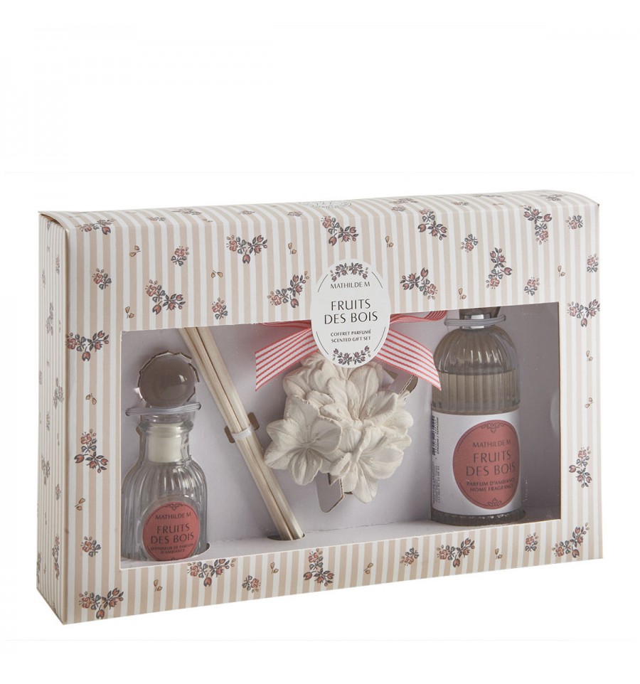 Esta caja contiene un difusor de fragancia para ambientes, un spray para ambientes y una bonita decoración de yeso perfumada, meticulosamente cincelada a mano. ¡Una idea de regalo irresistible, para regalar o simplemente para darse un capricho!