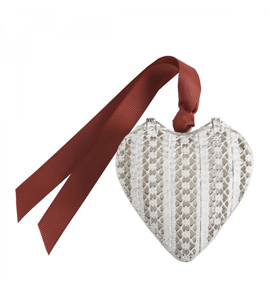 Inspirado en el encanto de antaño, revela sublimes detalles cincelados y contiene un bonito corazón de yeso perfumado. Su delicada cinta completa esta creación y le da un toque femenino y elegante, fiel al espíritu refinado de Mathilde M. Para colgar en una puerta, suspender de un tirador o simplemente colocar sobre un mueble.