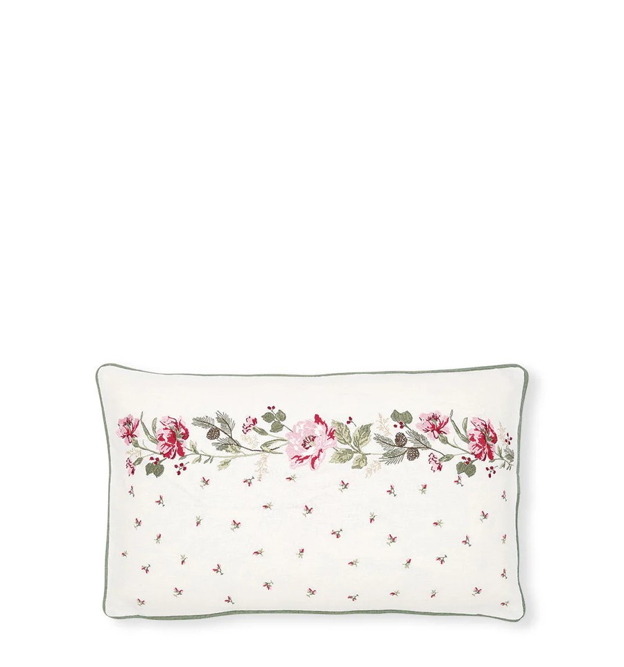 La funda de cojín Leonora en blanco con bordado de GreenGate es una funda decorativa hecha de algodón. Leonora evoca la sensación de estar envuelto en una cálida manta de lana, bebiendo vino caliente junto a un fuego crepitante mientras las fragancias de la cena de Navidad llegan desde la cocina. Combínala con lino en rojo para resaltar el clásico color navideño.