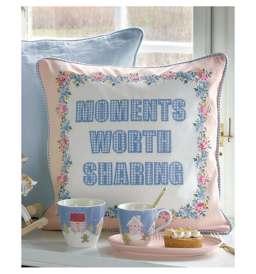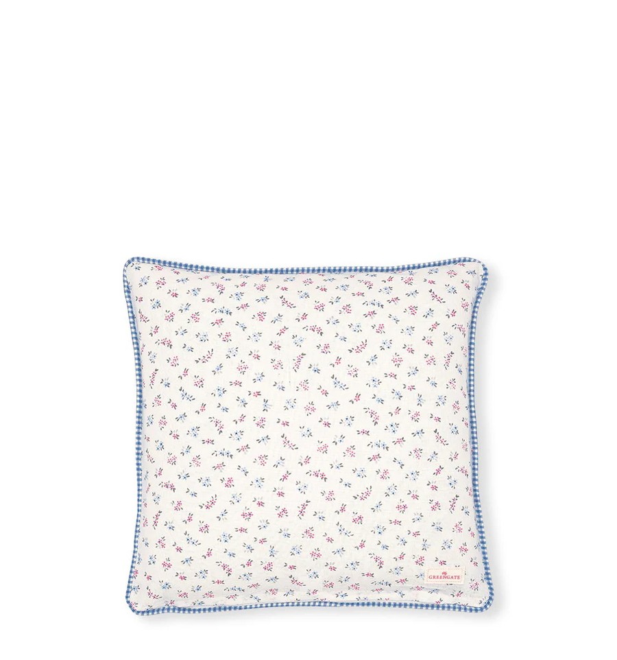 La funda de cojín Laura azul polvoriento con bordado de GreenGate es una funda decorativa hecha de algodón. La nieve cae lentamente de un cielo que se oscurece, cubriendo de nieve las delicadas flores. Combínala con lino en tonos marrones cálidos para agregar contraste.