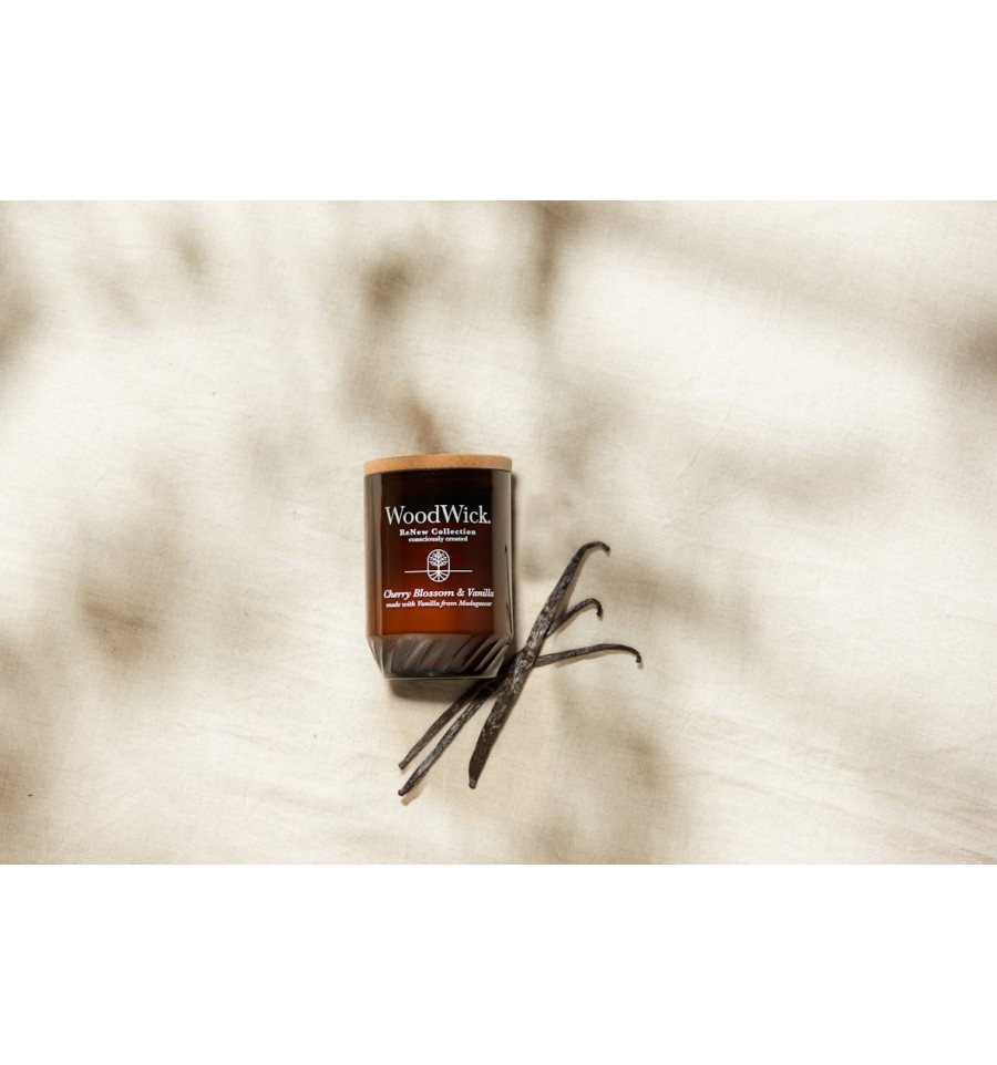 Las velas WoodWick® ReNew se crean conscientemente para ayudarte a elegir la vela perfecta que refleje tu estilo personal. Sus fragancias ricas y sutiles, elaboradas con ingredientes de origen biológico, materiales reciclados y aceites esenciales, se presentan en una mezcla de cera de soja y coco de origen vegetal y natural. El recipiente de vidrio ámbar, con un sutil toque, está hecho con un 55 % de vidrio reciclado posconsumo, y la tapa de corcho proviene de árboles de origen responsable. Hemos seleccionado especialmente la mecha de madera, colocada a mano, para crear un ambiente más suave y sutil.