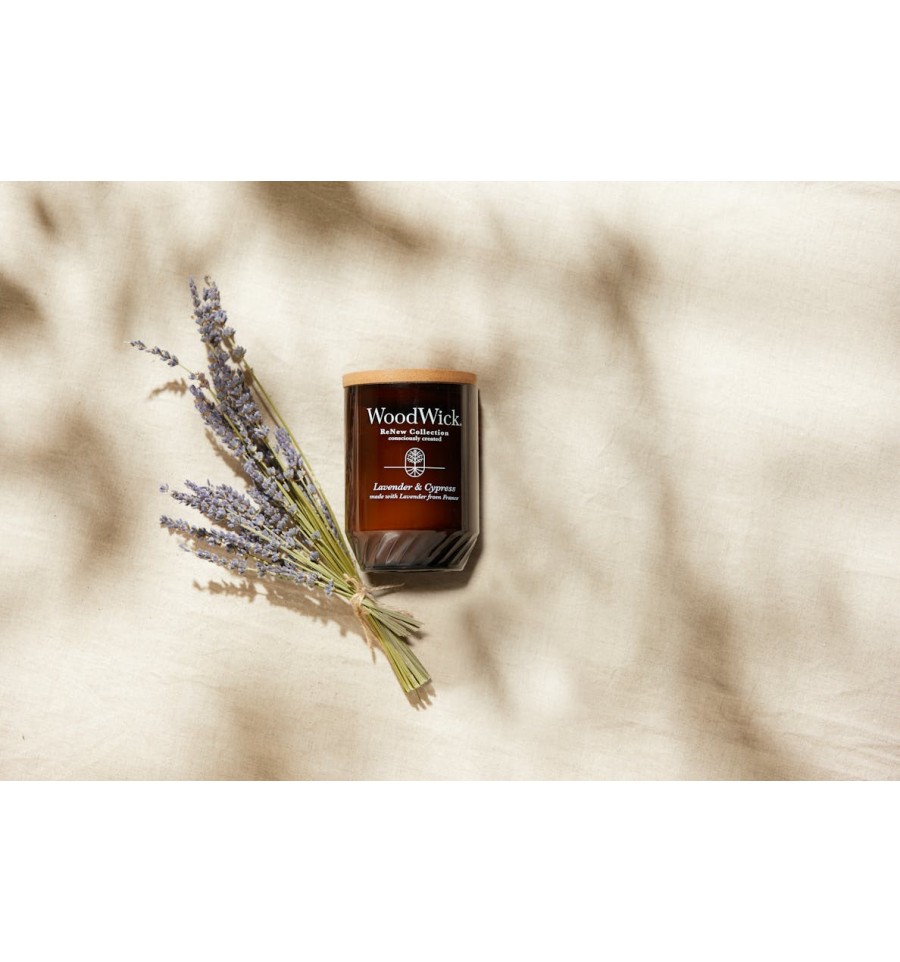 Las velas WoodWick® ReNew se crean conscientemente para ayudarte a elegir la vela perfecta que refleje tu estilo personal. Sus fragancias ricas y sutiles, elaboradas con ingredientes de origen biológico, materiales reciclados y aceites esenciales, se presentan en una mezcla de cera de soja y coco de origen vegetal y natural. El recipiente de vidrio ámbar, con un sutil toque, está hecho con un 55 % de vidrio reciclado posconsumo, y la tapa de corcho proviene de árboles de origen responsable. Hemos seleccionado especialmente la mecha de madera, colocada a mano, para crear un ambiente más suave y sutil.