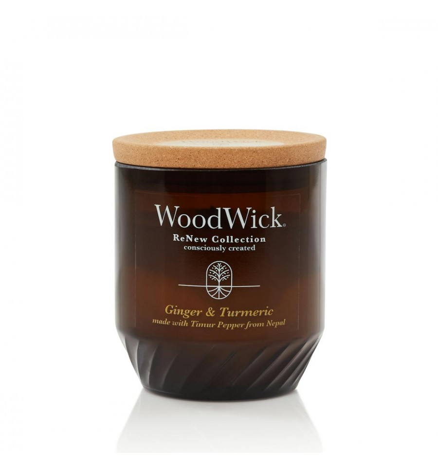 Las velas WoodWick® ReNew se crean conscientemente para ayudarte a elegir la vela perfecta que refleje tu estilo personal. Sus fragancias ricas y sutiles, elaboradas con ingredientes de origen biológico, materiales reciclados y aceites esenciales, se presentan en una mezcla de cera de soja y coco de origen vegetal y natural. El recipiente de vidrio ámbar, con un sutil toque, está hecho con un 55 % de vidrio reciclado posconsumo, y la tapa de corcho proviene de árboles de origen responsable. Hemos seleccionado especialmente la mecha de madera, colocada a mano, para crear un ambiente más suave y sutil.