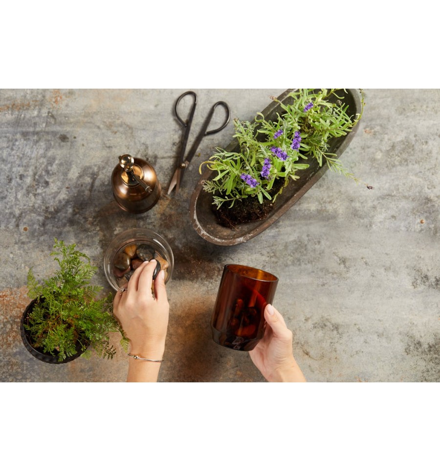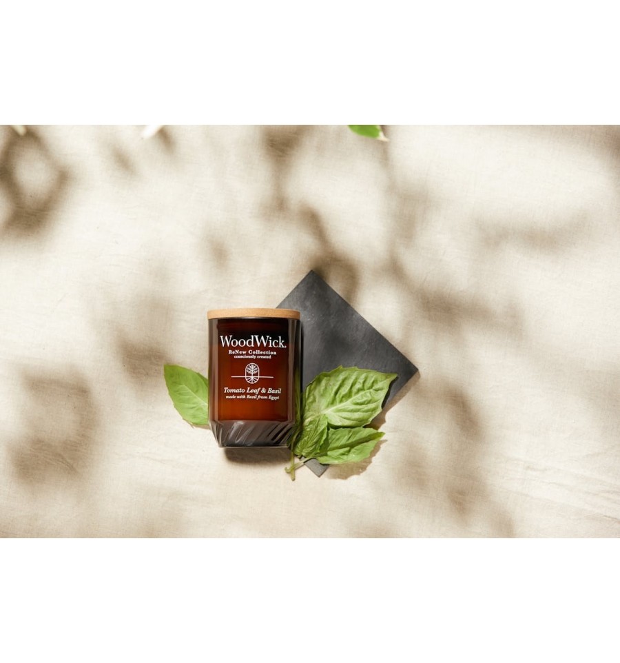 Las velas WoodWick® ReNew se crean conscientemente para ayudarte a elegir la vela perfecta que refleje tu estilo personal. Sus fragancias ricas y sutiles, elaboradas con ingredientes de origen biológico, materiales reciclados y aceites esenciales, se presentan en una mezcla de cera de soja y coco de origen vegetal y natural. El recipiente de vidrio ámbar, con un sutil toque, está hecho con un 55 % de vidrio reciclado posconsumo, y la tapa de corcho proviene de árboles de origen responsable. Hemos seleccionado especialmente la mecha de madera, colocada a mano, para crear un ambiente más suave y sutil.