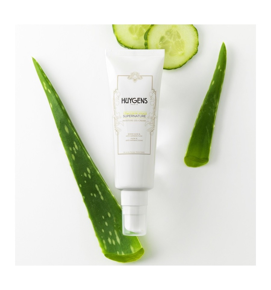 El gel-crema hidratante Supernature de HUYGENS no testado en animales, es vegano, está fabricado en Francia y contiene un 99 % de ingredientes de origen natural y un 58 % de ingredientes procedentes de agricultura ecológica.