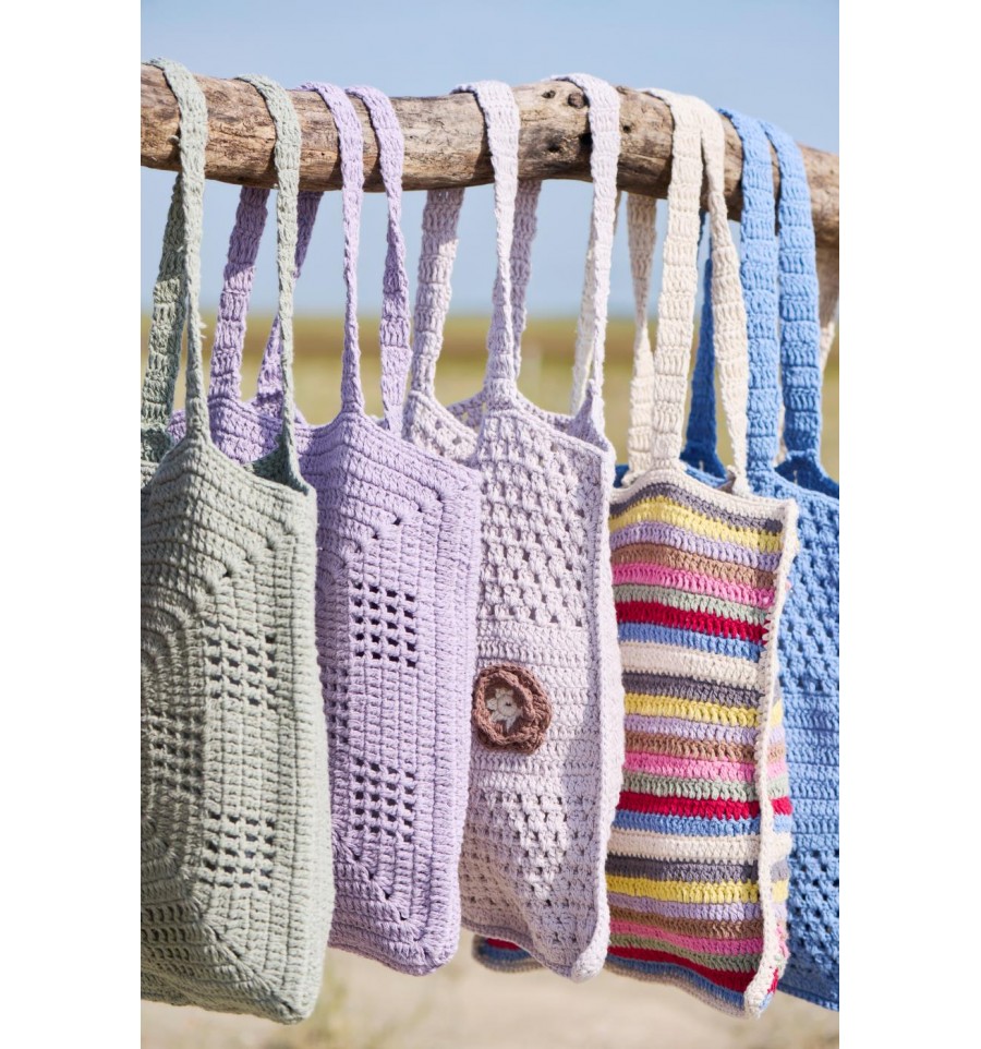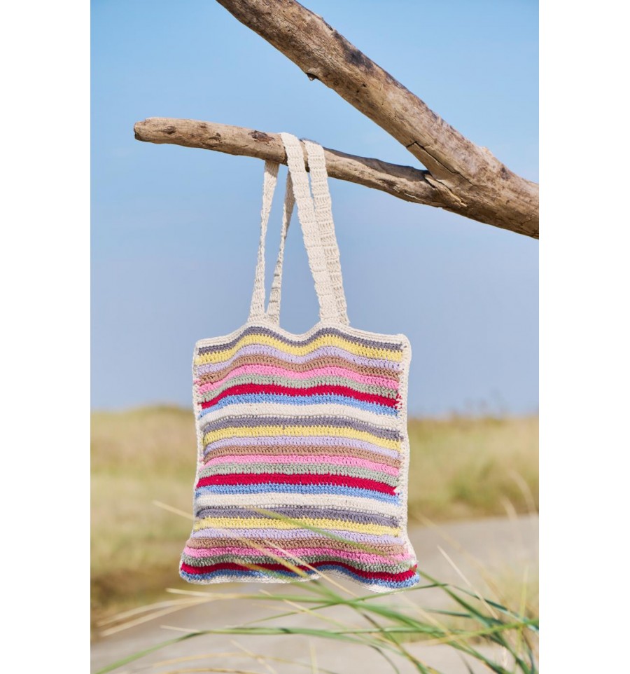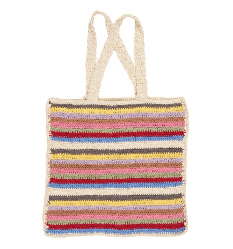 Colorido bolso de crochet con rayas multicolor. Un bolso divertido y llamativo que le da alegría y vitalidad a tu estilo.