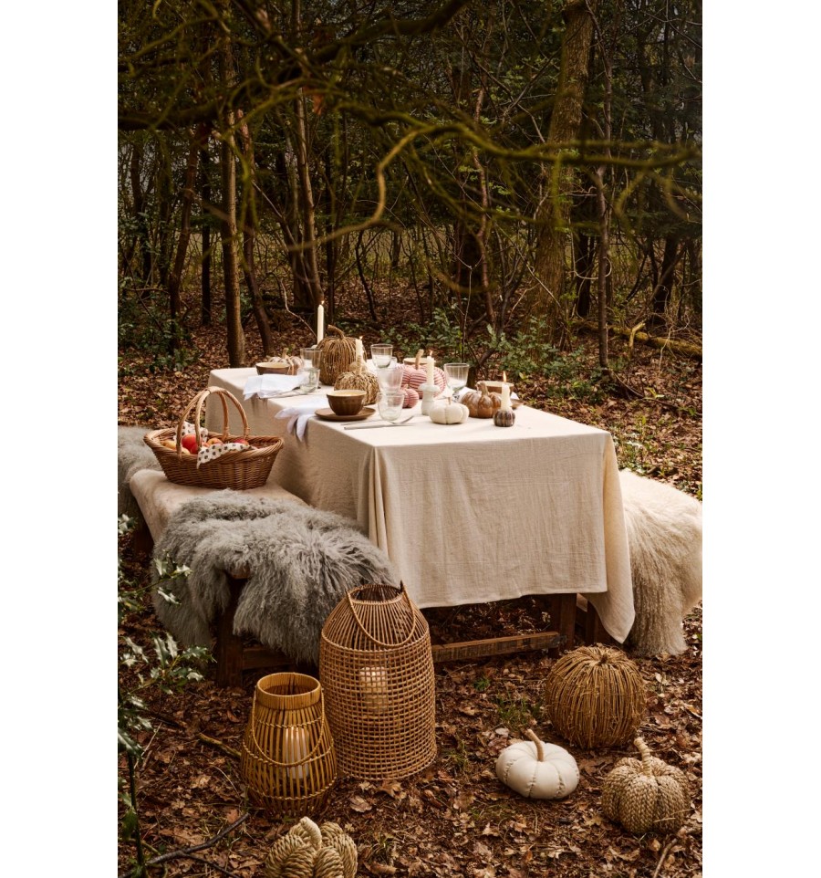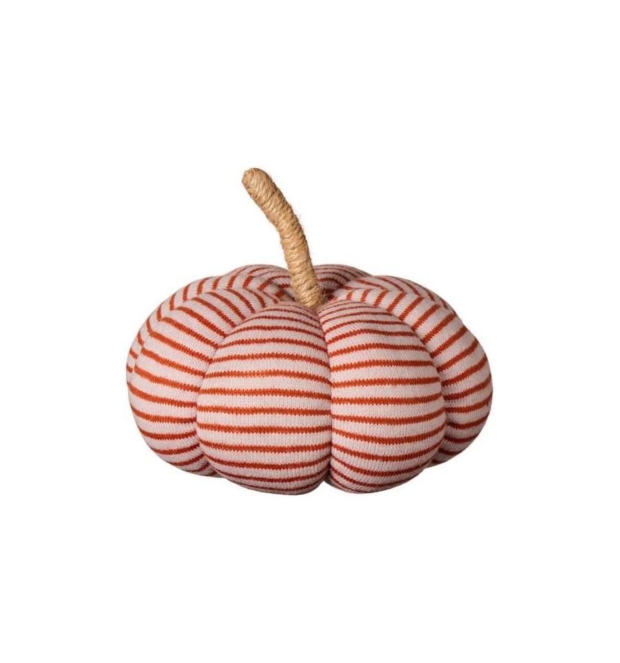 Calabaza decorativa en beige con rayas color óxido y tallo de yute: perfecta para dar un toque otoñal y de Halloween a tu hogar. Un detalle decorativo que añade encanto navideño a tu interior.