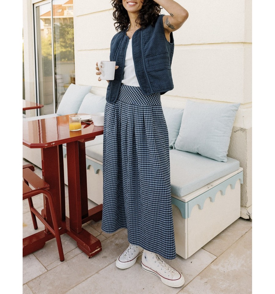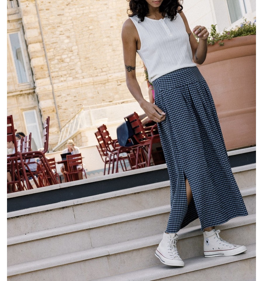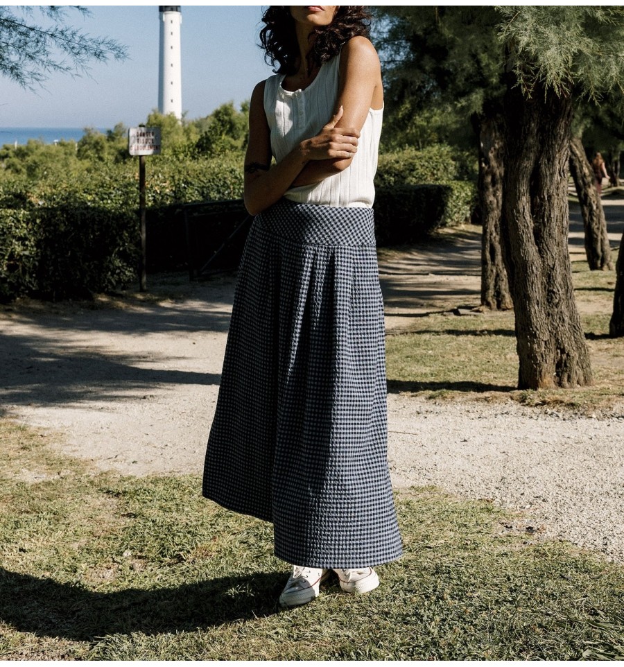 Falda midi de cuadros mini con viscosa que le da textura y caída a la prenda, ideal para quienes quieren combinar estilo y comodidad. Cintura media con cierre de cremallera y aberturas laterales.