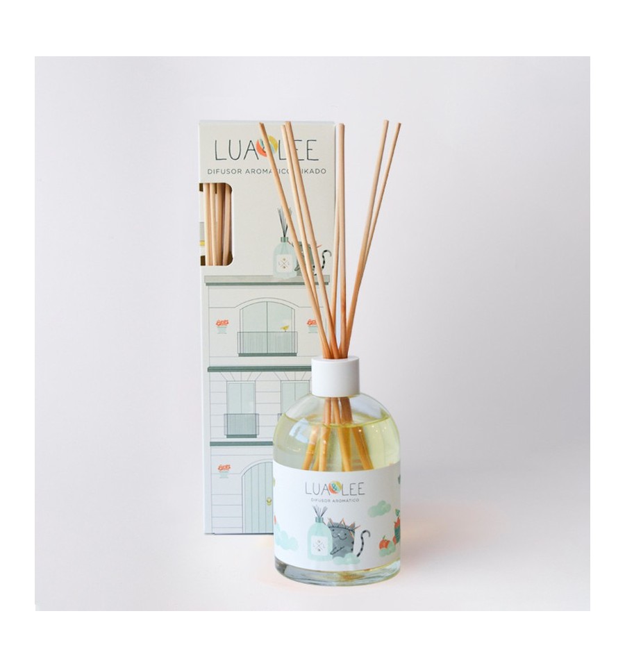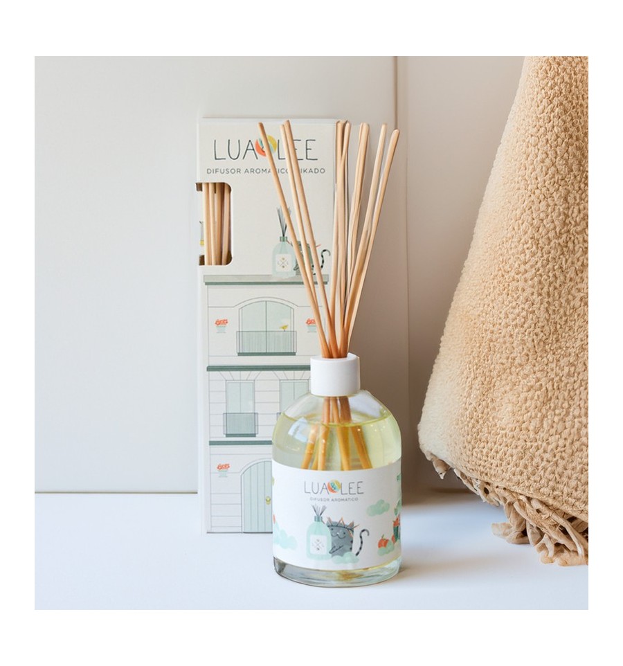 Este difusor aromático utiliza palitos de madera de abedul para esparcir de manera suave y continua el aroma de Lua & Lee por cualquier estancia. Su diseño práctico y tamaño reducido es perfecto para aquellos que buscan una opción más versátil, sin renunciar a la calidad ni a la duración. Llena cada rincón de tu hogar con la esencia de Lua & Lee y disfruta de momentos en familia perfumados con recuerdos que perduran.