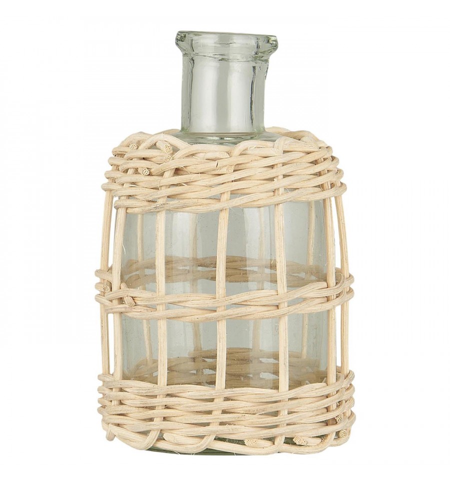 Jarrón de cristal, mide 13.5 cms. de altura y 8 cms. de diámetro.