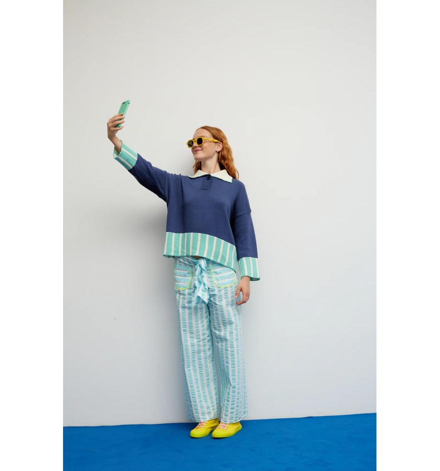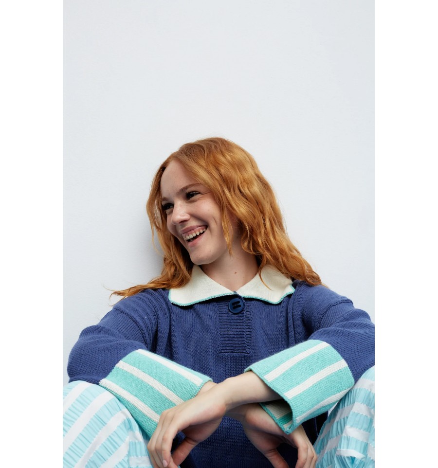 Viola mide 1´70m y lleva un jersey en talla SM.