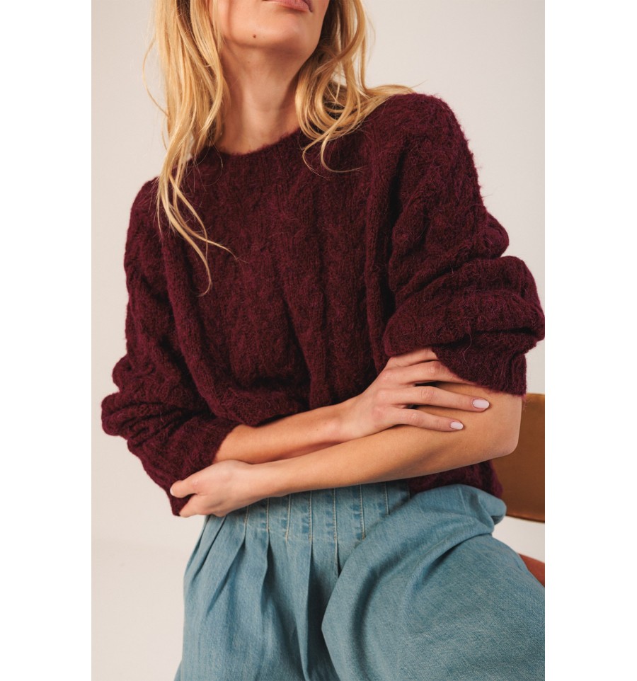 Este jersey de punto trenzado con alpaca, será uno de tus favoritos de la colección. Resulta muy actual por ser crop y holgado. Atrévete a probar el color o los colores que más te gusten ;)