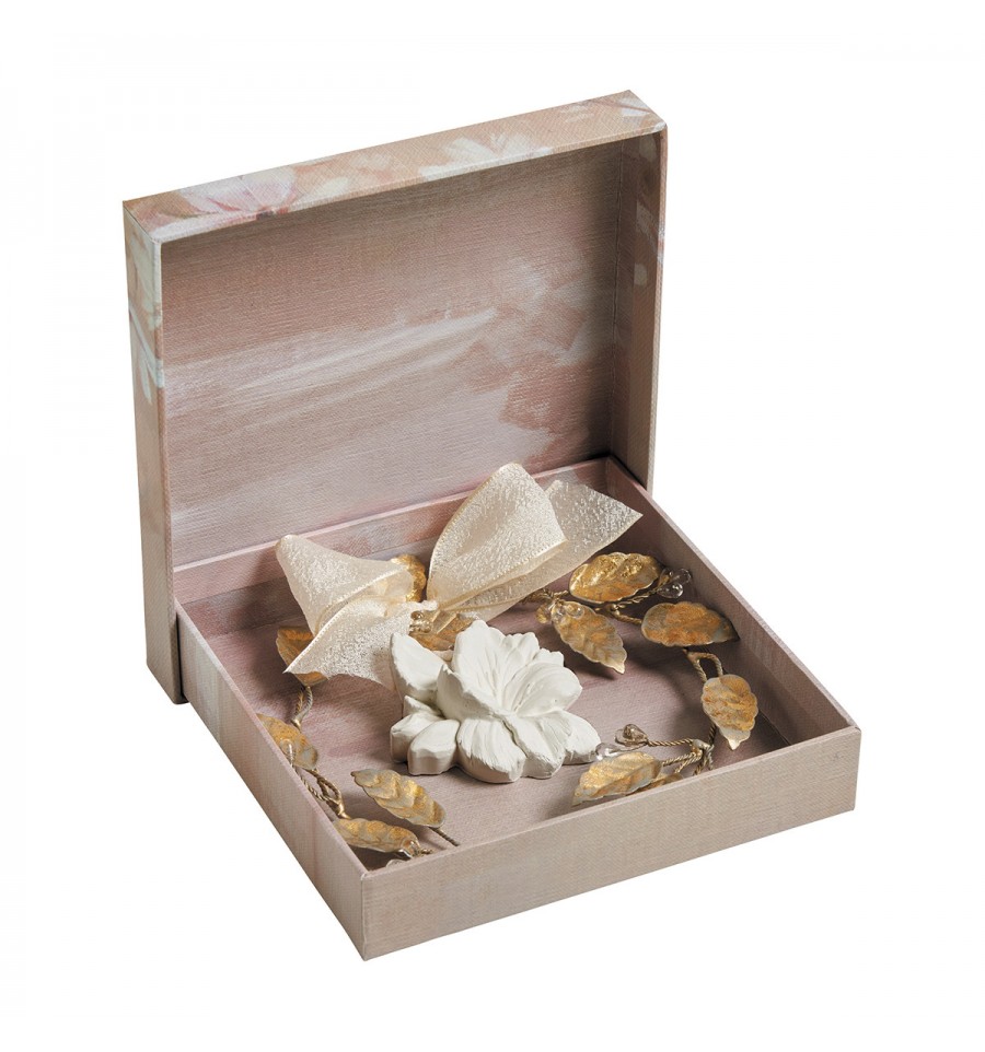 Aporta un toque de poesía a tu decoración con esta magnífica corona floral Carnets d'Artistes, adornada con una delicada flor de yeso perfumada con Fresia Délice, una fragancia tierna y suave con acentos chispeantes de frutos rojos realzados por un ramo de fresias y rosas.