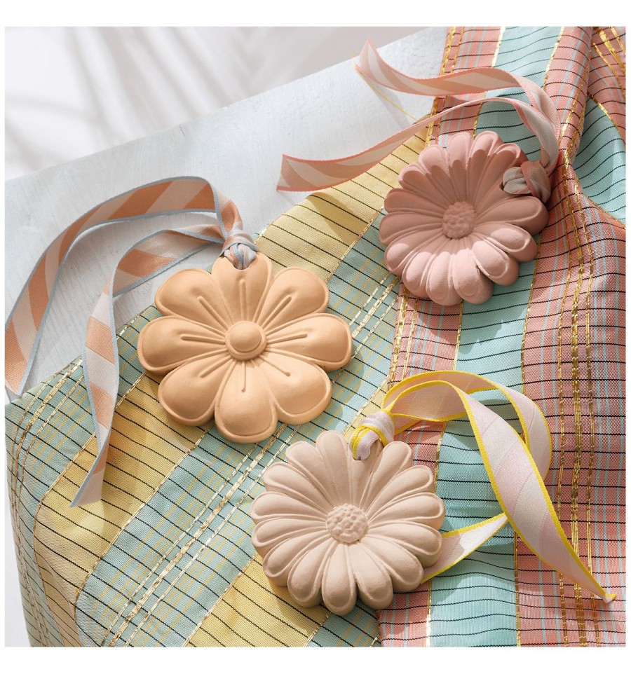 Completamente hecha a mano, esta decoración de yeso coloreado representa una encantadora Margarita que perfumará de forma delicada y duradera todos los pequeños espacios de tu casa como armarios, cajones o maletas.