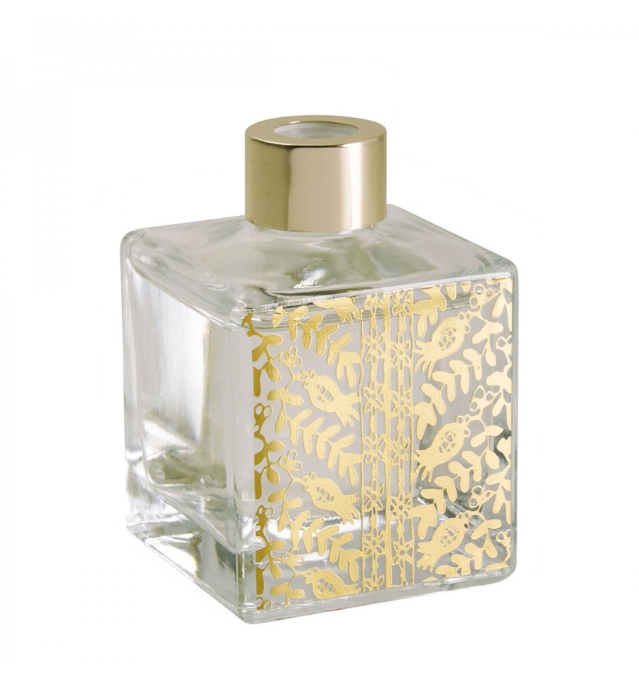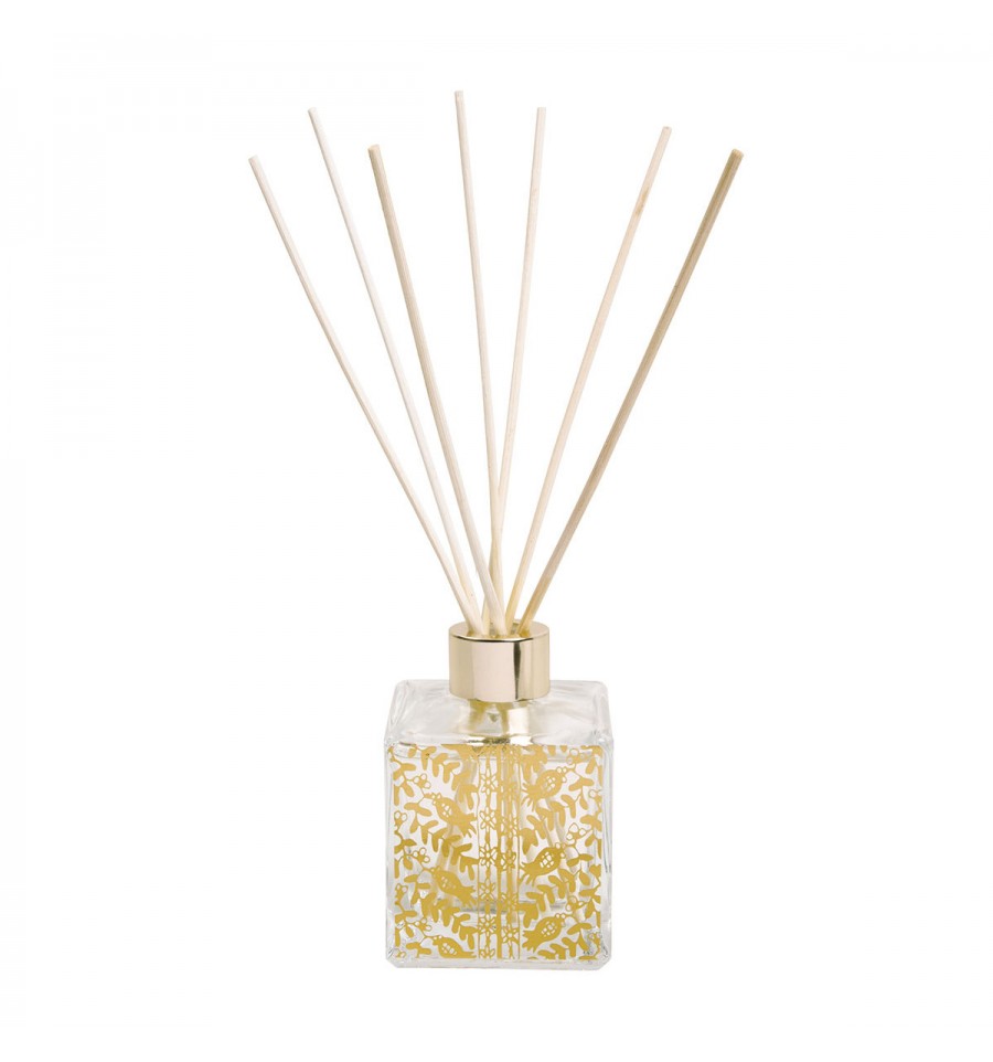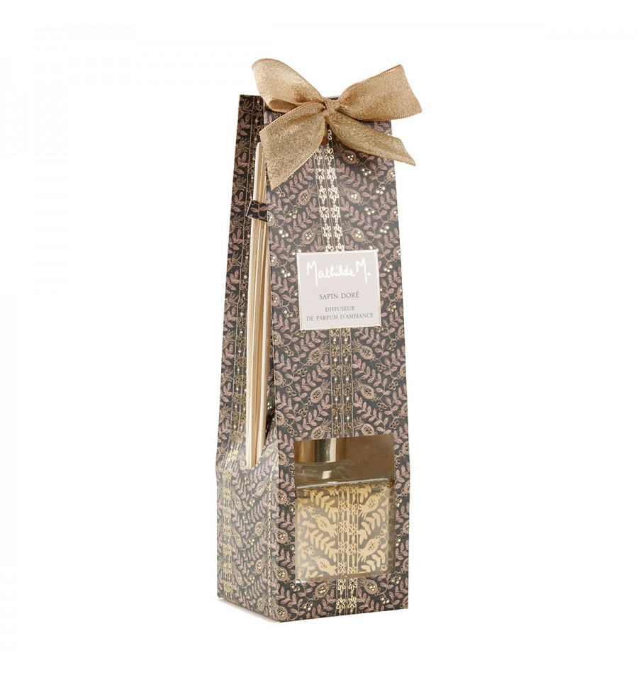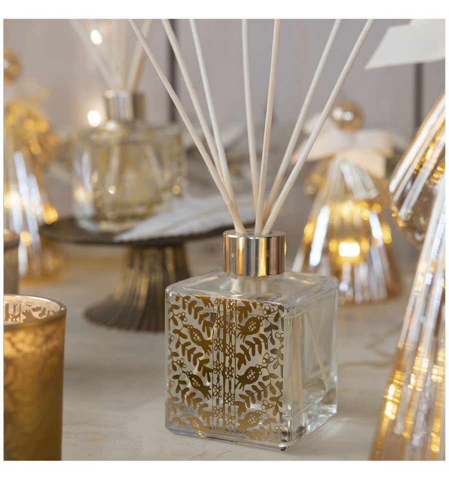 Déjate seducir por la elegancia y el refinamiento del difusor de aromas de ambiente Fêtes Enchantées, decorado con sus delicados motivos dorados. Te encantará con Sapin Doré, una fragancia cálida y deliciosamente amaderada con notas de agujas de pino y cedro que se mezclan suavemente con una base tierna de sándalo.