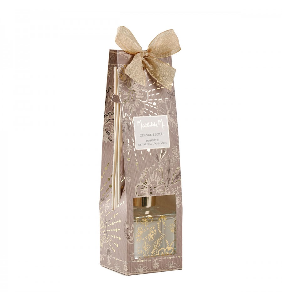 Déjate seducir por la elegancia y el refinamiento del difusor de aromas de ambiente Fêtes Enchantées, decorado con sus delicados motivos dorados. Te encantará con el irresistible aroma de Star Orange, que calienta el ambiente con sus deliciosas notas amaderadas. Un cautivador aroma de naranja realzado con sabrosas especias y vainilla con toques sensuales.
