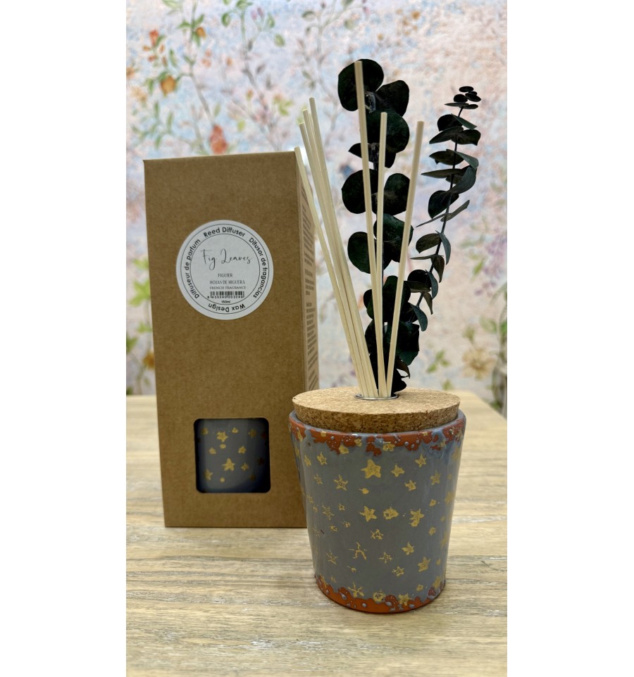 MIKADO CERAMICA C/RAMA ESTRELLAS GRIS/HOJA HIGUERA