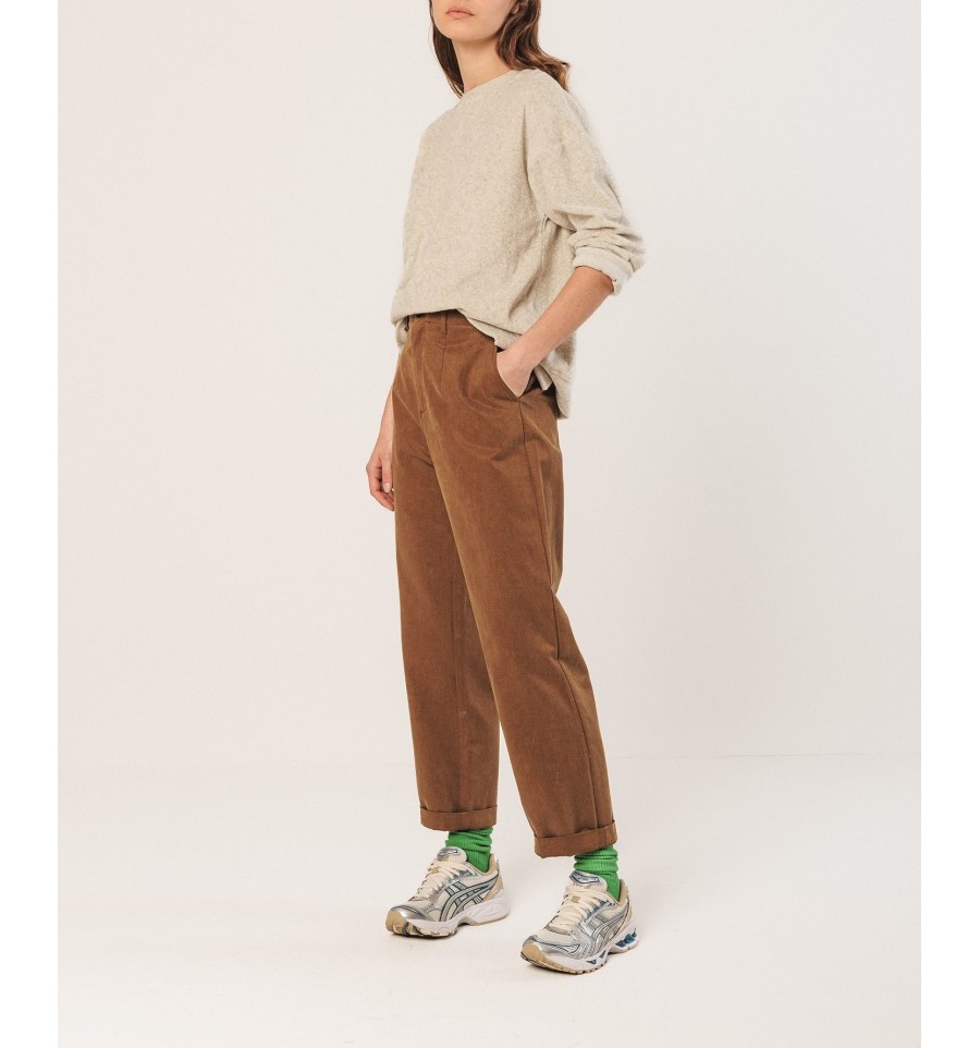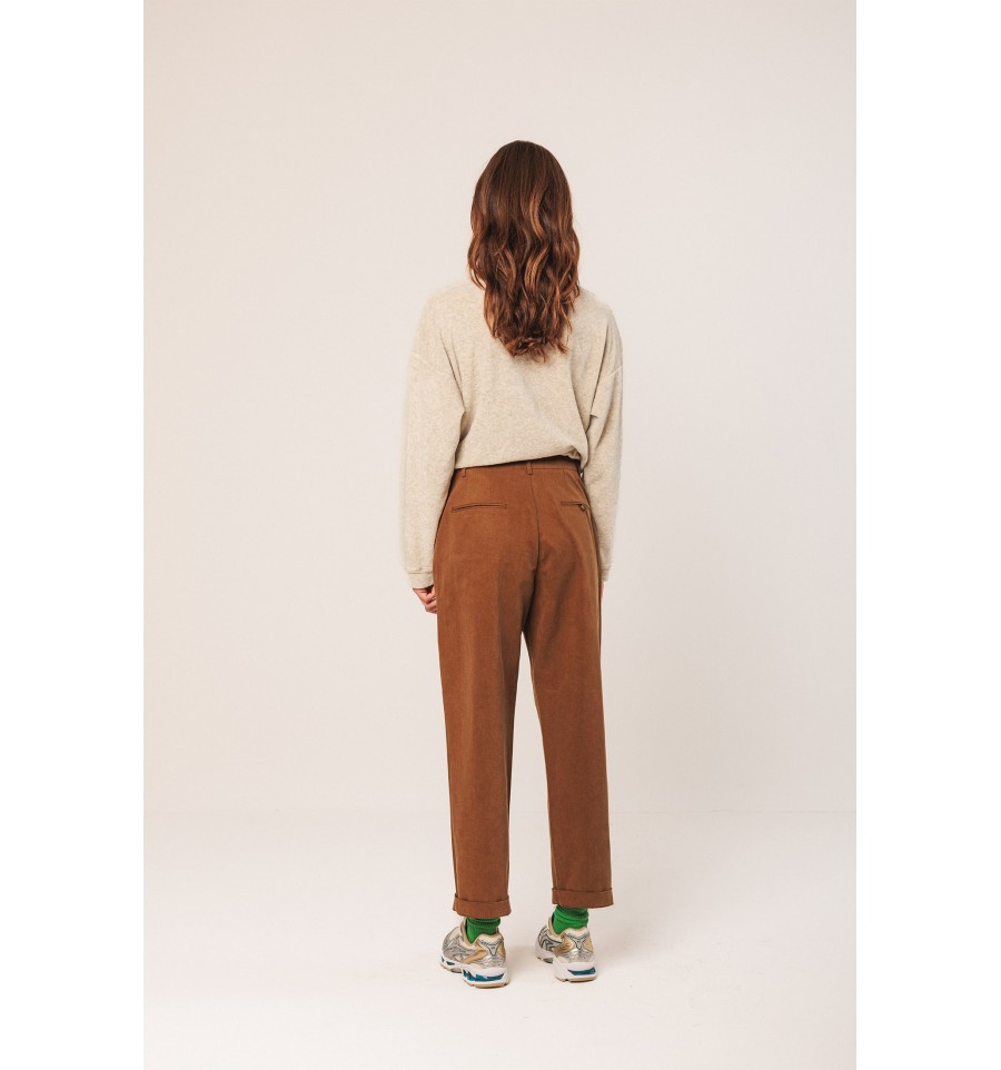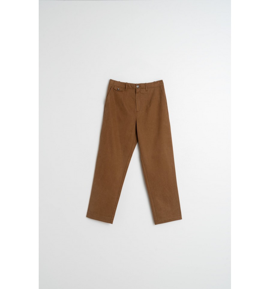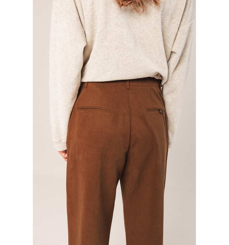 • Corte de media cintura con trabillas y cierre de cremallera y botón