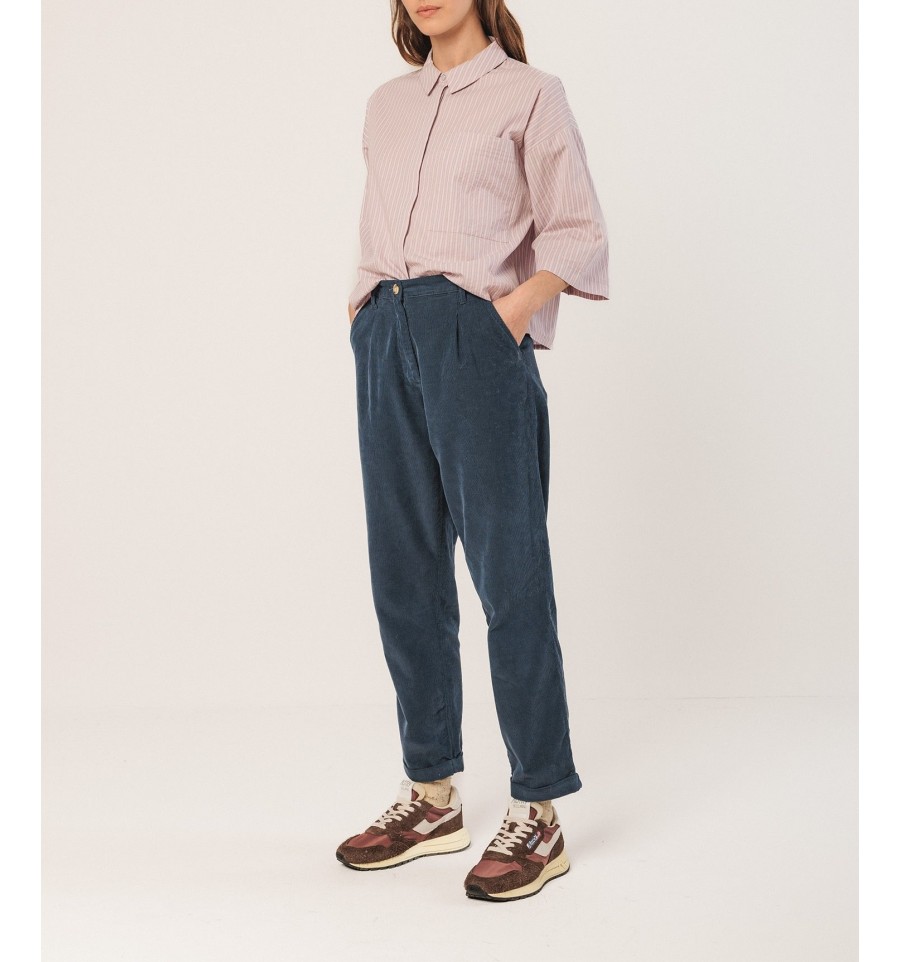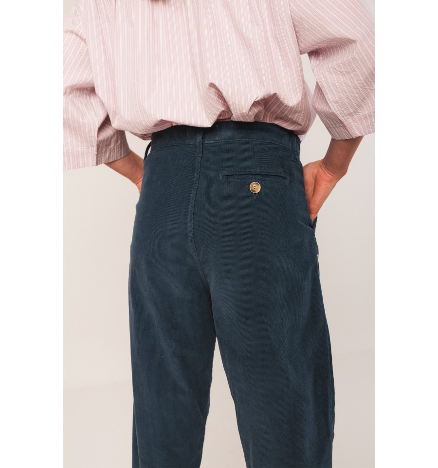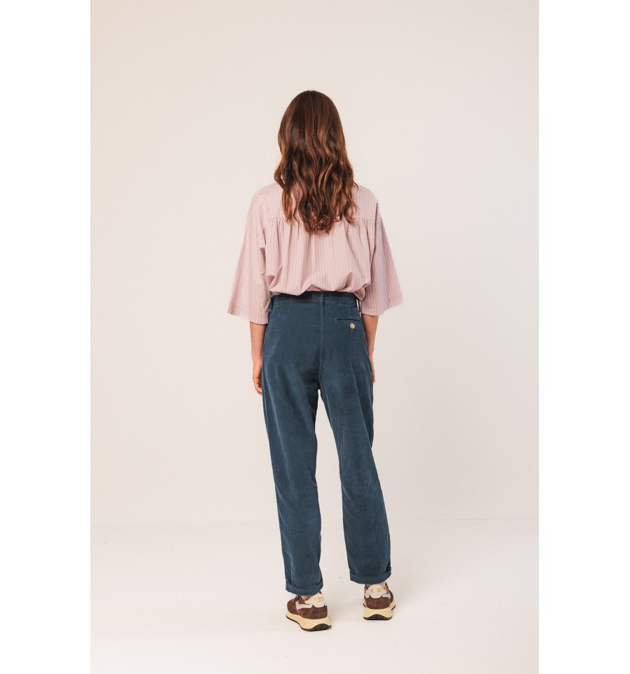 Un pantalón de pana como fondo de armario no puede faltar, esta temporada viene con corte carrot, de pernera ancha y bajo vuelto y estrecho. Super comfy y fácil de combinar.