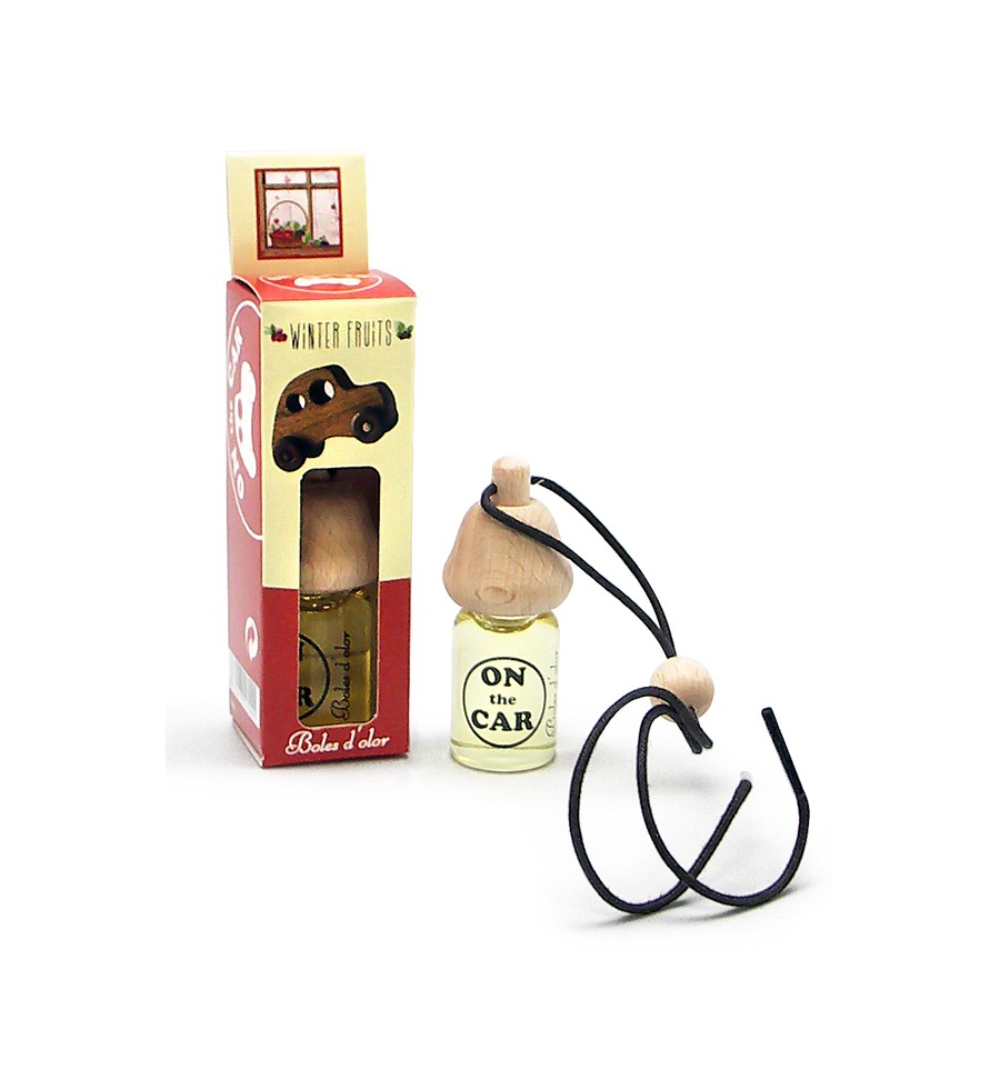 Botellita rellena de esencia con tapón de madera que actúa como difusor de aroma.
