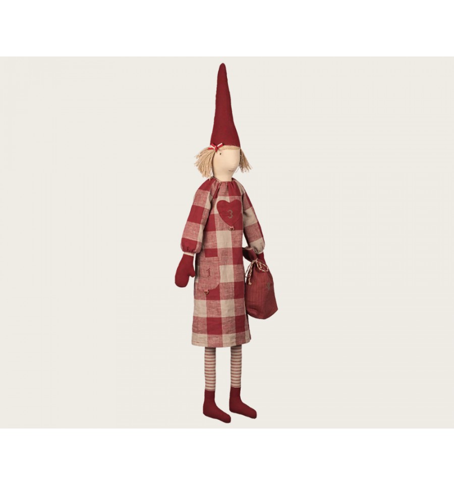Diciembre está lleno de tradiciones familiares y este calendario Pixy es otra más. La chica de calendario de Adviento tiene 4 anillos/bolsillos para colgar pequeños regalos, para cada domingo hasta Navidad. Con cinta en el cuello para colgar.