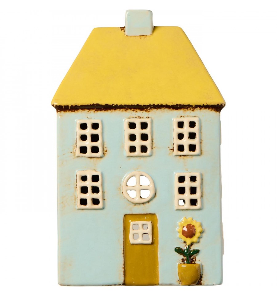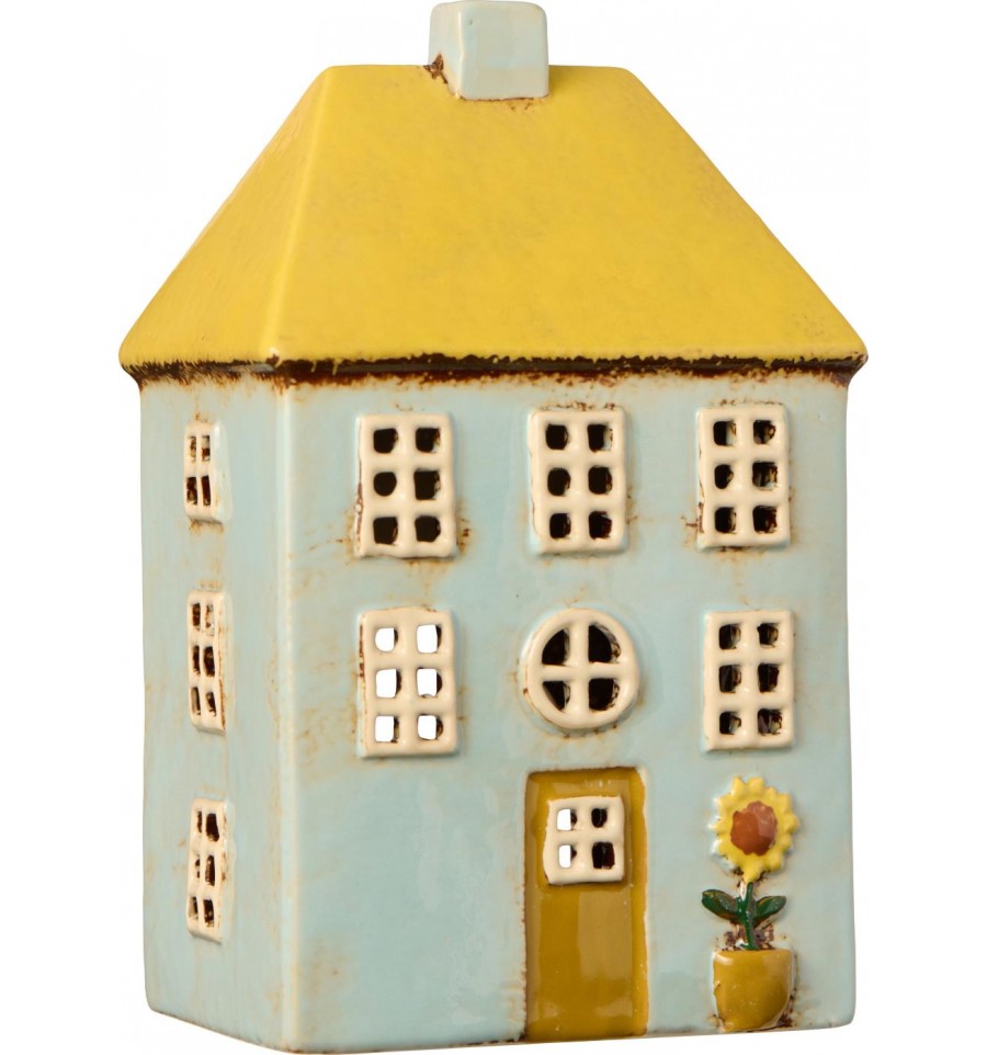 Las encantadoras casas de cerámica pueden estar solas, colocadas entre macetas y plantas, o alineadas para crear un pequeño vecindario. Las casas de Nyhavn crean una atmósfera encantadora dondequiera que estén ubicadas, y cuando se coloca una vela de té encendida en el interior, se puede disfrutar de la acogedora luz que brilla a través de las pequeñas ventanas. Las pequeñas y populares casas de cerámica están en línea con las tendencias actuales en la decoración del hogar con artesanía. Siempre existe un grado de imprevisibilidad en el esmaltado de la cerámica, y durante la cocción los colores cobran vida. Esto es exactamente lo que le da a las pequeñas casas un aspecto único y original, con pequeñas diferencias de color y bordes rústicos.
