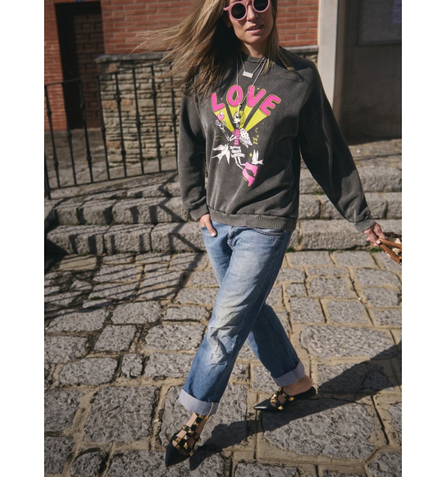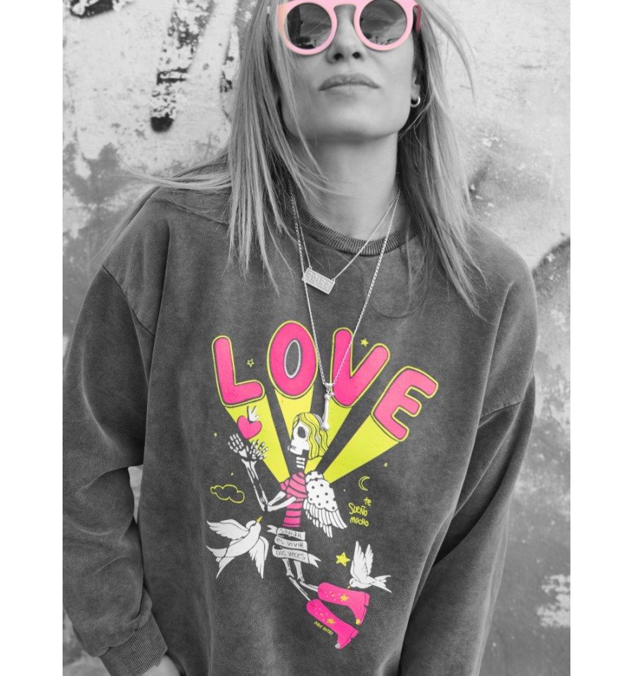 Sudadera 100% algodón de primera calidad y muy gustosa, con ilustración Love con flúor en la parte delantera, es calentita!
