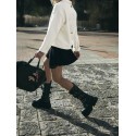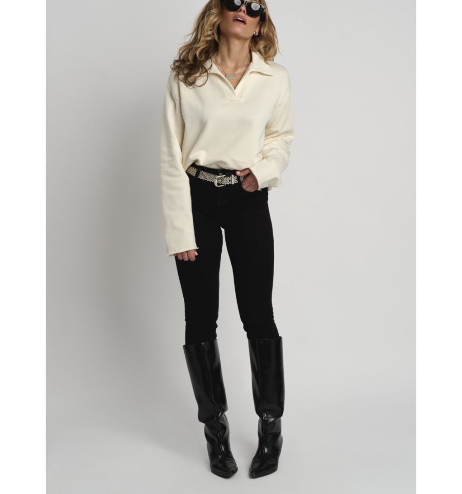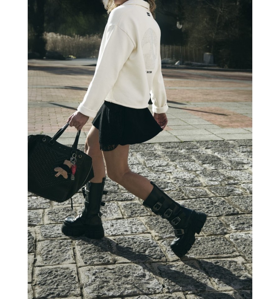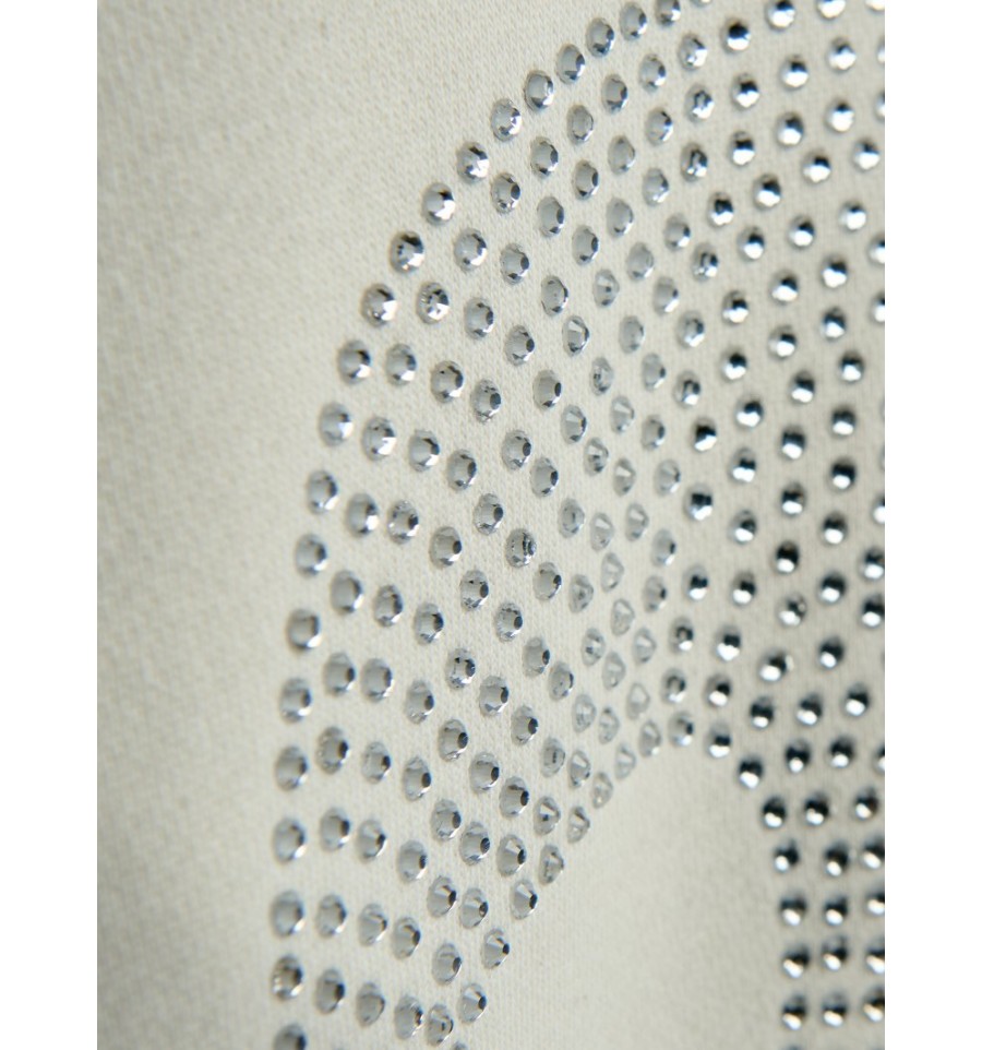 Sudadera tipo polo de algodón cruda con cuellos, con ilustración trasera de calavera en tachuela cristal