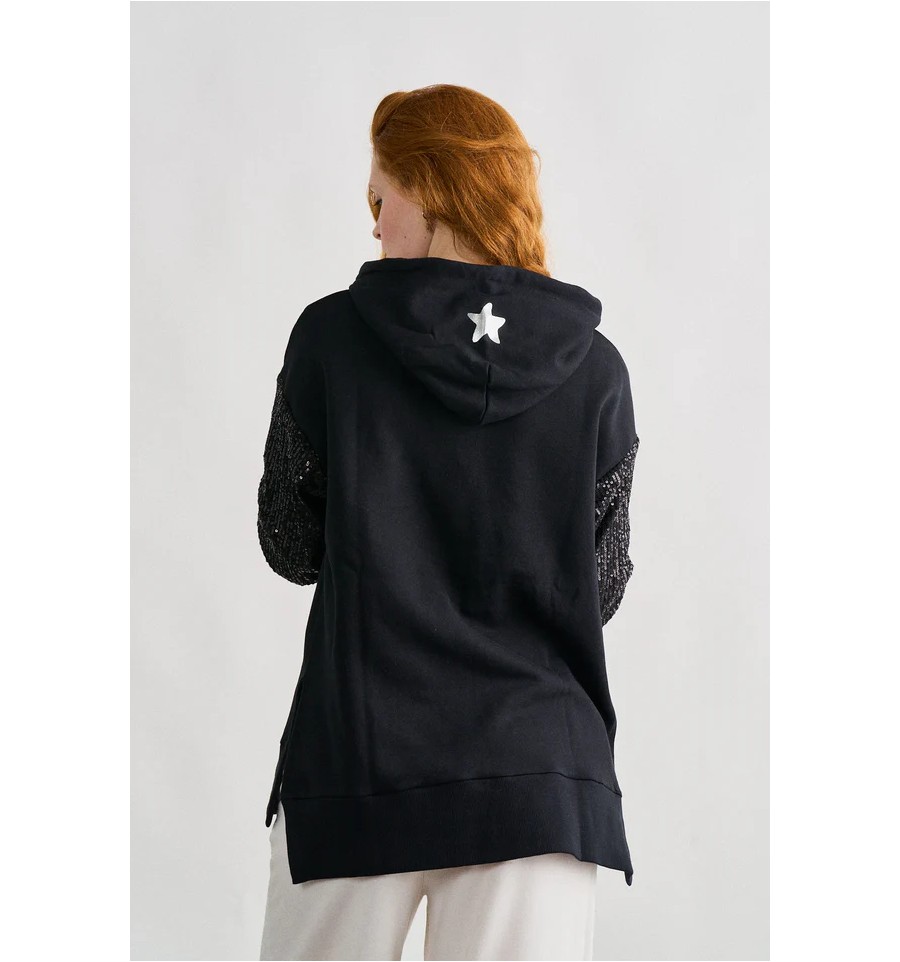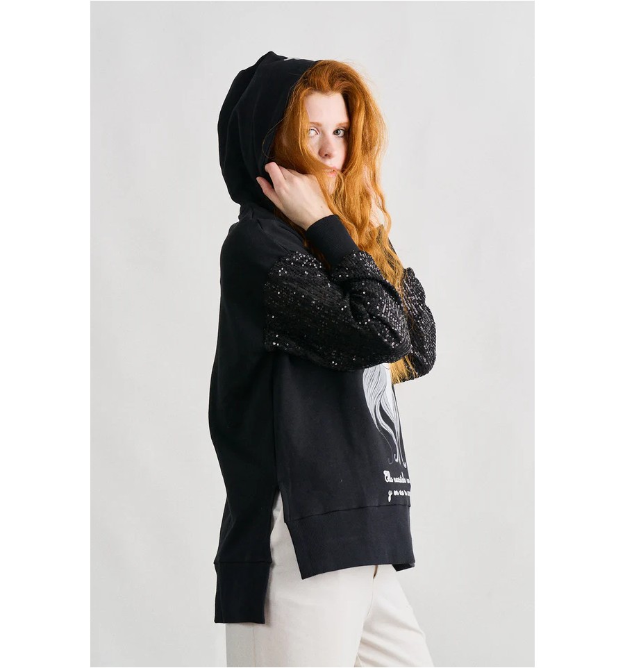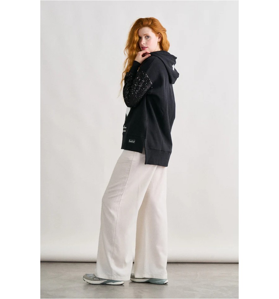 -Sudadera felpada, con aberturas laterales y largos desiguales.