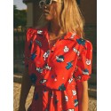 Vestido camisero con abotonadura en el pecho y volante en el bajo. Tiene cinturón a juego